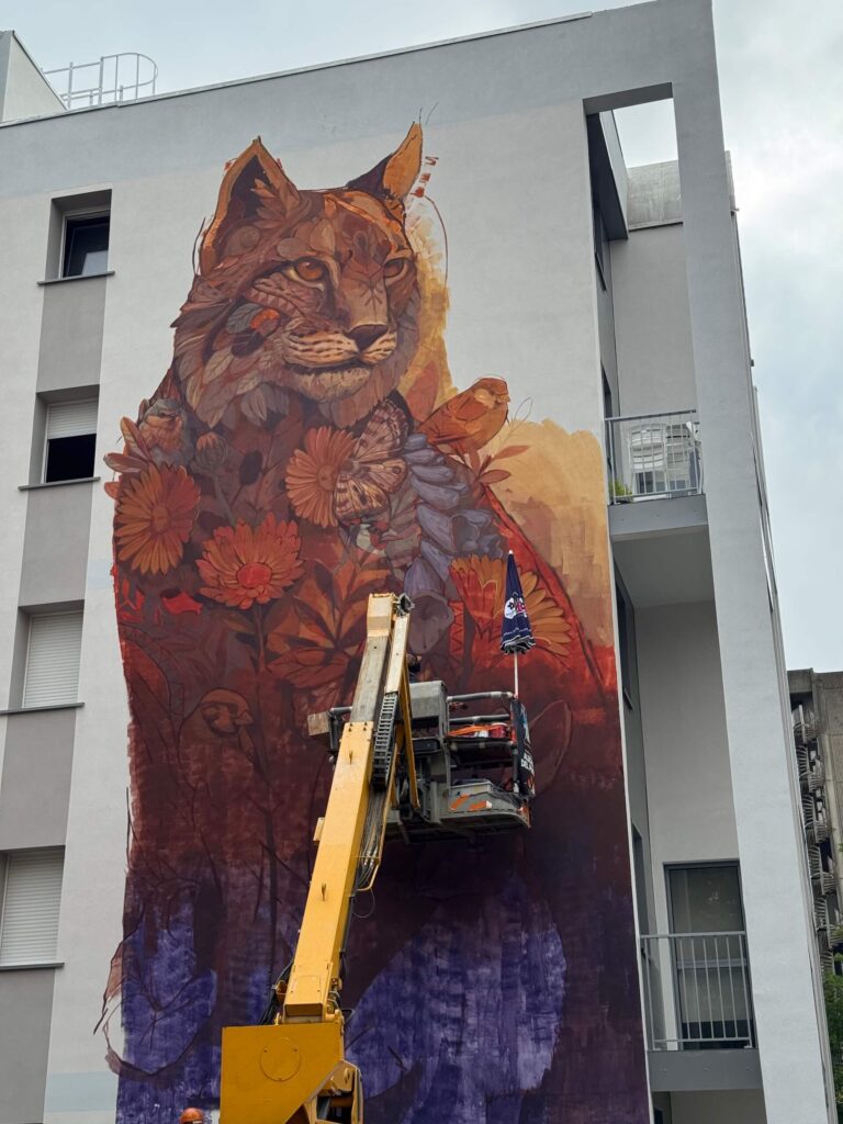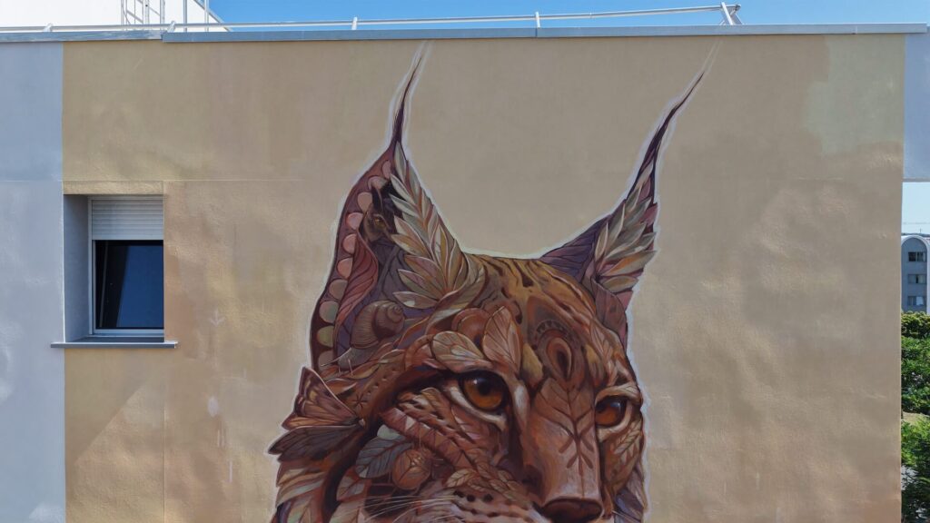 La démarche des deux artistes est donc une belle déclaration d’amour à mère nature mais aussi un appel à une harmonie avec le monde moderne. Le lynx cache une force, un talent ou une vertu que l’homme peut apprendre. Il s’affiche sur un immense mur pour dépasser la réalité et créer un nouveau monde. Papillons, fleurs, oiseaux, feuilles, escargot, lièvre, scarabée… la nature dans sa diversité s’affiche dans un animal iconique pour ne faire qu’un, symbole de cette harmonie à conquérir.