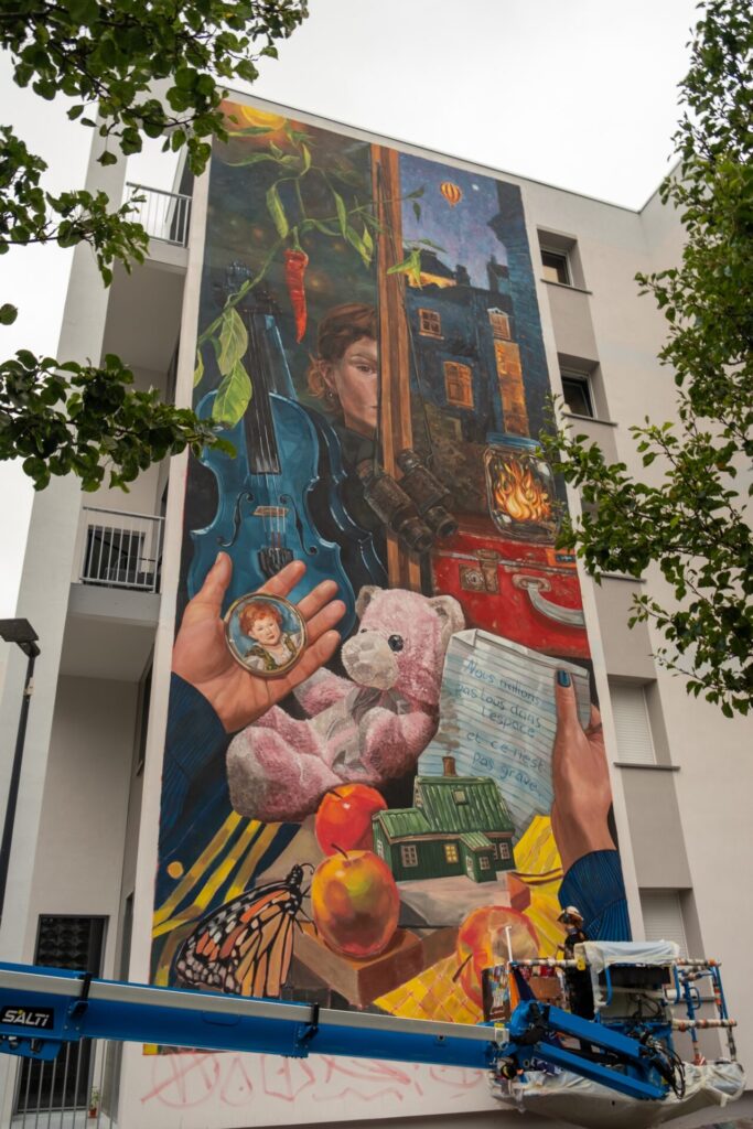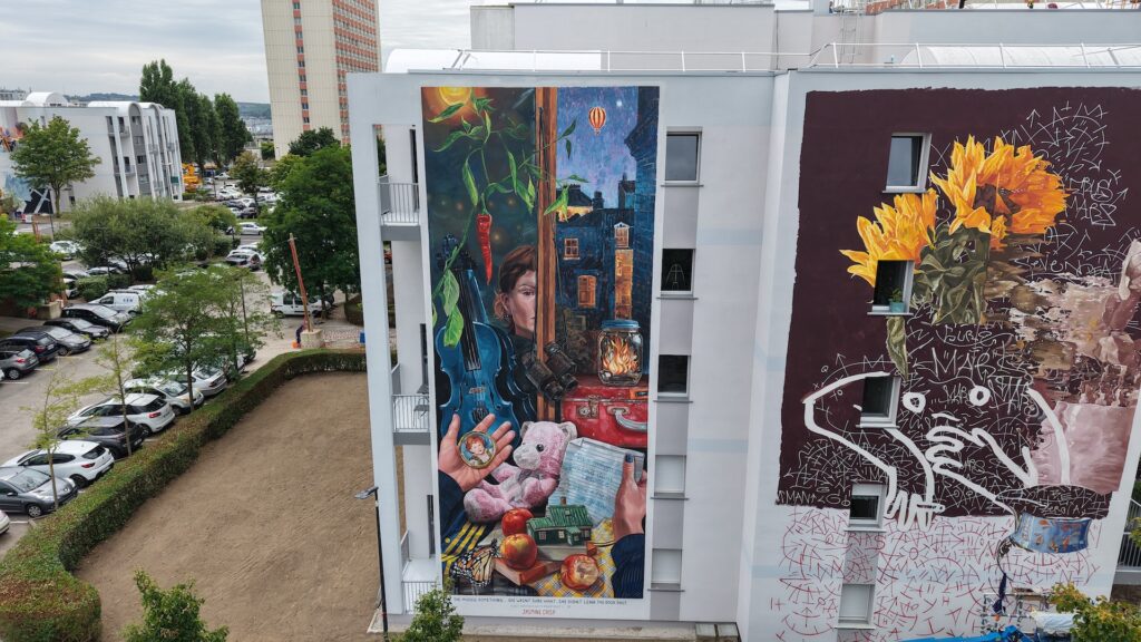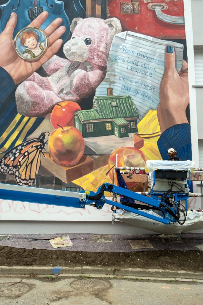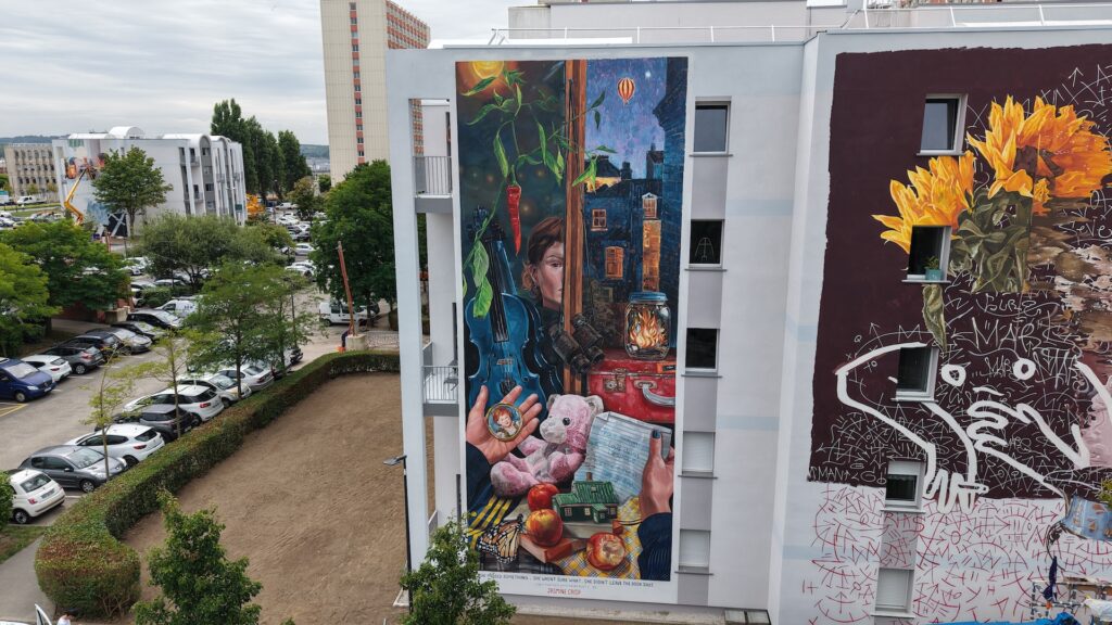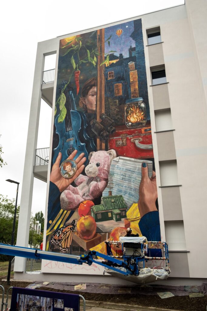 A deux pas de la création de Rustam QBic et à quelques mètres de la nouvelle fresque de Wedo Goas, le quartier proche de la gare s’inscrit toujours plus dans le musée en plein air boulonnais avec le nouvelle œuvre rêveuse et poétique signée Jasmine Crisp. Et vous, si vous commenciez une nouvelle vie, quels souvenirs et objets emmèneriez-vous ?