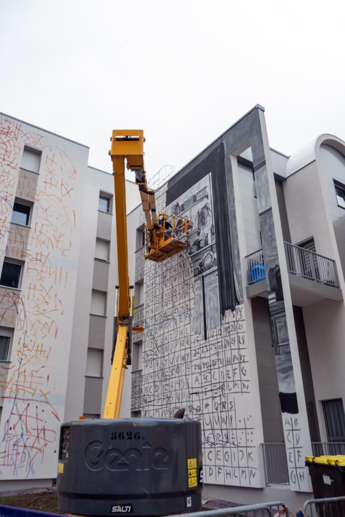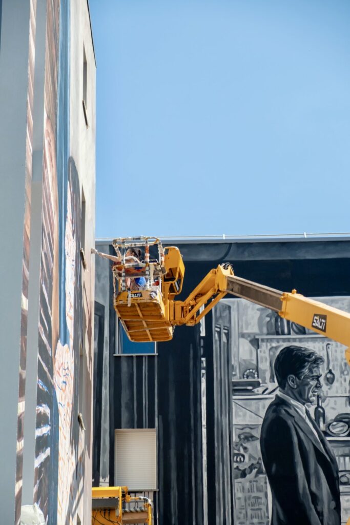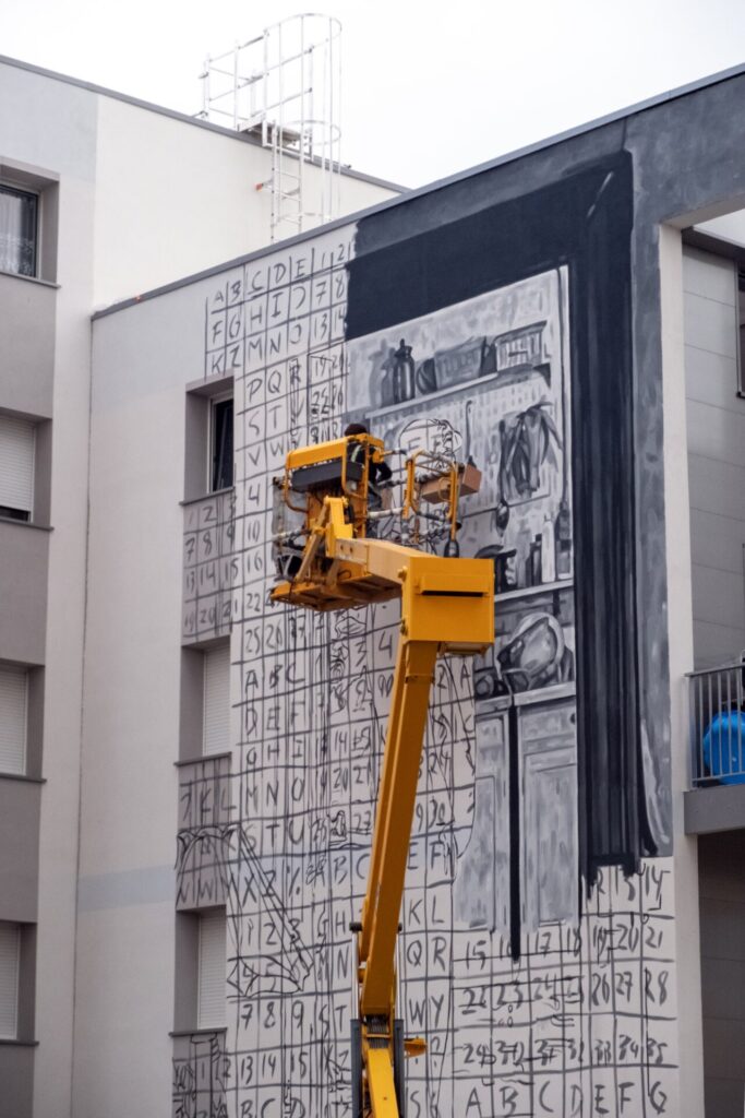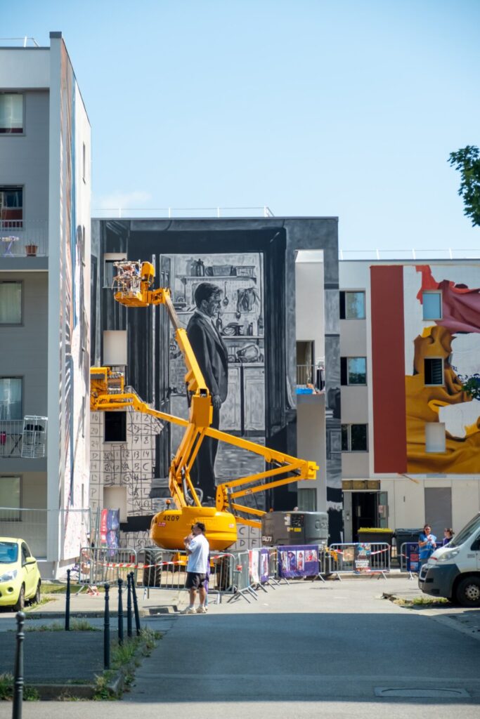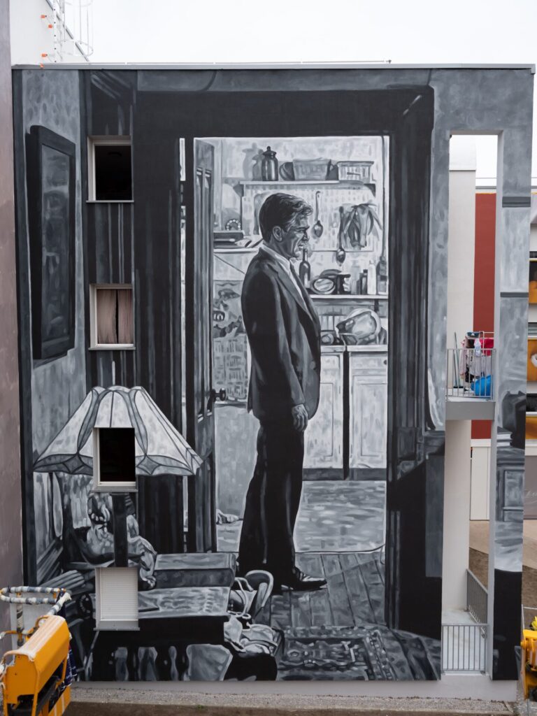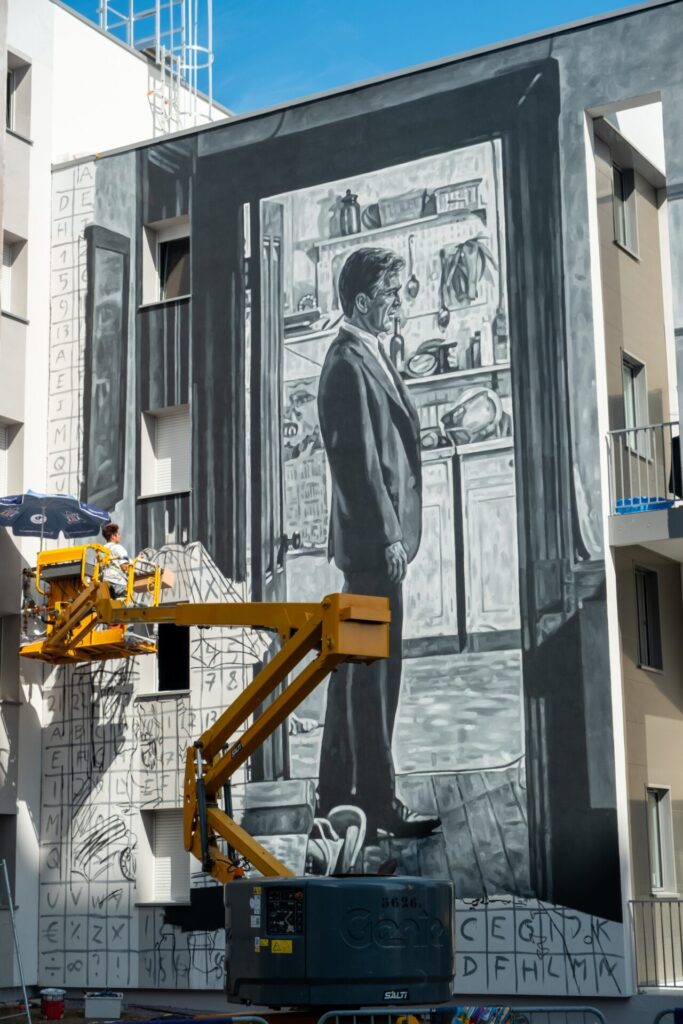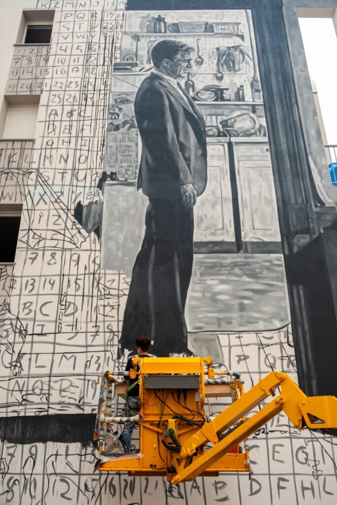 Une œuvre poétique qui s’inscrit dans la philosophie de cette 10ème édition qui permettra de proposer « les 100 murs de Boulogne-sur-Mer ». La première en noir et blanc cette année. « Je travaille de temps en temps en couleurs mais j’aime beaucoup cette ambiance noir et blanc, ce contraste aussi qui marque la différence entre les choix » continue la muraliste portugaise. « J’aime aussi le côté cinématographique et un peu mystérieux que cela implique car cet endroit pourrait être n’importe où. »